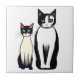 Retro Modern Black and White Cat and Kitten Tile