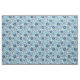This fabric features an all over print of clean and modern geometric style illustrations of flowers with a retro feel. The flowers are in shades of blue and cream and set against a light blue background.