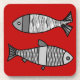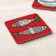 Retro Modern Fish, Deep Red and Grey / Grey Coaster