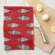 Retro Modern Fish, Deep Red and Grey / Grey Tea Towel