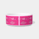 Mid-Century Modern, whimsical, retro fish pattern pet bowl, in shades of pastel to medium pink and fuchsia, on a medium fuchsia pink background