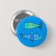 Mid-Century Modern, whimsical, retro fish pattern button, in turquoise, aqua, lime green and sky blue, on a deep cerulean blue background