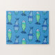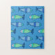 Retro Modern Fish, Turquoise and Cerulean Blue Jigsaw Puzzle