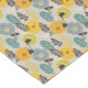 A floral design resembling those of the 1950s and 60s, consisting of blue-grey and orange-yellow flowers, with sea green and black leaves on a grey background.