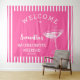 personalised welcome banner retro bachelorette party tapestry in bright colorful hot pink and white with a cocktail glass is perfect as a bachelorette party photo backdrop. Celebrate your bridal shower in style with the perfect cocktail party theme in bold pink, the perfect theme for the nostalgic vintage 70s bride and her bridesmaids.