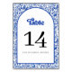This Retro Modern Italian Bridal Shower Table Number features a bold blue tile border inspired by classic Mediterranean ceramics. The detailed floral pattern frames a clean white arched center, creating a refined and balanced layout. The rich cobalt blue adds depth and elegance to the overall design.
