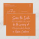 Cute Modern Minimalist Orange Pink Save the Date postcard. Cute design; minimal modern aesthetic; fun contemporary colours. Features script lettering.