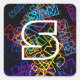 Retro-Modern Name & Monogram Bright Colours & Blac Square Sticker