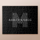 Retro Modern Name/s Editable Monogram Black & Grey Jigsaw Puzzle