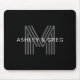 Retro Modern Name/s Editable Monogram Black & Grey Mouse Mat