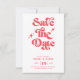 This Retro Modern Red & White Wedding Save the Date features bold red retro script on a crisp white background. The simple yet stylish design combines vintage charm with a modern touch. Easy to customise with your wedding details, available as printed cards or a digital download. A perfect way to announce your special day in a timeless retro style.
