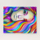 Puzzle in a semi abstract, mid-century modern inspired, portrait of a woman with long, flowing, rainbow hair in vivid primary colours
