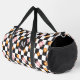 Retro Monogram Daisy Flower Chequerboard Pattern Duffle Bag Gym Bag features a retro black and white chequerboard pattern with pink and orange daisy flowers. Add your custom monogram, name or text for a fabulous gift for family and friends. Created by Evco Studio www.zazzle.com/store/evcostudio