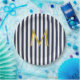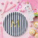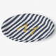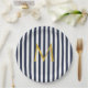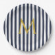Retro Monogram Navy Blue & White Stripes Striped Paper Plate