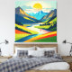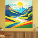 Retro Mountain Landscape Illustration Colourful
