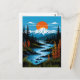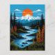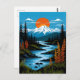 Retro Mountain Landscape Illustration Red Blue Postcard
