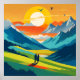 Beautiful colourful print Retro Mountain Landscape Illustration
