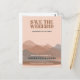 This save the date postcard is perfect for a destination wedding in the mountains. It features retro-inspired type that reads "Save the Weekend" and modern screenprint-like graphic of layered mountains in soft neutral colours. The front has a place to include the wedding weekend dates, couple's names and the wedding location and wedding website address. The back is setup as a postcard for easy mailing.
