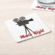 Fun paper coasters for those who love all things movies features retro tripod style movie camera with customisable red text. Great for movie night. Check out our collection of movie themed paper & party supplies!