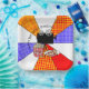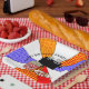Red, blue, yellow, white, red gender neutral movie night themed birthday party paper plates in a hand drawn pop art digital art style.
