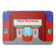 The stars are out in full force on this Retro Movie Theatre Bath Mat--both the stars in the night sky and the stars on the silver screen. This 1960's style, minimalist art design features the exterior of a classic movie house from the Golden Age of Cinema. The red building has a brilliantly lit marquee, which says, "NOW SHOWING," in red letters. Beneath the marquee, a theatre employee is ready for a crowd of movie going film buffs, which are sure to be lining up in droves. The silhouette of the clean cut, theatre worker is just visible through the aqua glass of the box office ticket booth. Not a kernel of popcorn can be found on the spotless grey sidewalk. Grey double doors flank the ticket booth. The front of the building displays black and white movie posters surrounded by dramatically lit frames. One poster shows star crossed lovers in a dramatic scene and the other shows a swimsuit clad starlet whose career is as bright as the sun she worships. This product is from the brilliant minds at Zazzle's StrangeLittleOnion, who have brought you such cult classics as Retro Pool Party, Film Noir Martini and Retro Space Age Cartoon Couple. Critics agree; if you can only purchase one design this season, make it this one (or any of the other spectacular StrangeLittleOnion designs)!