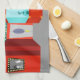 The stars are out in full force on this Retro Movie Theatre Kitchen Towel--both the stars in the night sky and the stars on the silver screen. This 1960's style, minimalist art design features the exterior of a classic movie house from the Golden Age of Cinema. The red building has a brilliantly lit marquee, which says, "NOW SHOWING," in red letters. Beneath the marquee, a theatre employee is ready for a crowd of movie going film buffs, which are sure to be lining up in droves. The silhouette of the clean cut, theatre worker is just visible through the aqua glass of the box office ticket booth. Not a kernel of popcorn can be found on the spotless grey sidewalk. Grey double doors flank the ticket booth. The front of the building displays black and white movie posters surrounded by dramatically lit frames. One poster shows star crossed lovers in a dramatic scene and the other shows a swimsuit clad starlet whose career is as bright as the sun she worships. This product is from the brilliant minds at Zazzle's StrangeLittleOnion, who have brought you such cult classics as Retro Pool Party, Film Noir Martini and Retro Space Age Cartoon Couple. Critics agree; if you can only purchase one design this season, make it this one (or any of the other spectacular StrangeLittleOnion designs)!