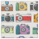 Retro multi-coloured camera. Rainbow photo pattern Fabric