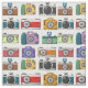 Retro multi-coloured camera. Rainbow photo pattern