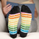 Step back in time with our Retro Multicolor Lines Striped Custom Name Socks. These socks showcase a vibrant and playful mix of colours in a retro-inspired striped pattern. Add a personal touch by customising them with your name, turning these socks into a unique accessory that captures the essence of nostalgia. Stride in comfort and personalised style with every step in these eye-catching, custom-designed socks that bring a touch of retro flair to your wardrobe.