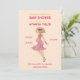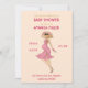 This Retro Mummy Baby Shower Party invitation card features a retro-styled pregnant woman wearing a polka dot dress, and a hat, flowing by the wind. The pastel pink and cream colour scheme adds a soft touch to the overall design, making it perfect for a baby shower. Its charming aesthetic is sure to impress your guests and set the tone for a delightful celebration.