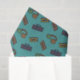 Coloful retro illustrated music icons with cassette tapes, headphones and boombox on teal background.