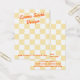 Earring jewellery display card featuring your business name in an orange, retro style font over a light yellow and white chequerboard pattern
