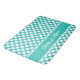 A retro name turquoise and white polka dot pattern bath mat makes a great bathroom accessory. Modify the fill colour and customise the name. It makes a great housewarming gift. Additionally, change the name into initials, change the font, font colour, or font size. Please remember to amend the shape coloration too. For custom design enquiries or customisation assistance, reach out to us at info@KBMD3signs.com.