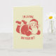 Grab this unconventional Christmas card to give to your cheeky loved ones! In a retro style, naughty Santa is laying down on his tummy with his head propped in his hands. The caption reads 'I'm laying on your gift.' This funny card is part of a larger collection of 7 rude Holiday Cards. You can personalise and buy the whole set for your naughty co-workers or your saucy friends and family! You can easily personalise the text inside the card to make it perfect for person receiving this card, and add your family names. There is another area to customise a longer greeting or family update message inside the card. Have fun! ....and Merry Christmas!
