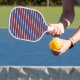 Retro Navy Blue 70s Inspired Striped Spring Summer Pickleball Paddle