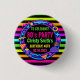 Custom Retro Neon 80’s Birthday Party Button. Personalized neon 80s theme badge perfect for adult milestone birthday celebrations.