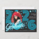 Retro Neon Blue Photo Graduate Announcement