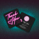 This retro and cool business customer thank you card is perfect for the modern and trendy business. It features a neon pink lighted script typography on top of a black striped background with cute hand-drawn hearts. It's playful, fun, and simple. The card includes a thank you message, a discount message, your social media information, your logo, and your business information; all of which can be customised to your liking. This nostalgic design will surely impress your customers and encourage return business.