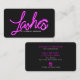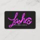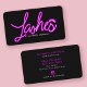 This business card features the word "Lashes" in an elegant script font in neon pink against a black background. Perfect for lash technicians. You can change the text or background to whatever colour you wish.