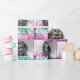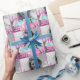 This custom gift wrapping paper features a retro 90s style Sweet 16 birthday theme. The background image is a sample black and white photo of a young girl, which you can replace with your own custom photo or image of your choice. The "Sweet Sixteen" title is printed at the bottom in teal and pink neon colours that resemble a vintage neon sign.