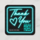 Retro Neon Teal Lighted Sign Customer Thank You Square Business Card