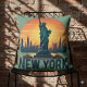 This graphic design features the Statue of Liberty set against a bold New York City skyline, illuminated by a warm, retro-style sunset. The composition balances modern graphic elements with a nostalgic travel aesthetic, evoking the timeless energy of NYC. The silhouetted cityscape adds depth, while the rich colour palette enhances the urban aesthetic. Yellow taxis and subtle details contribute to the vintage travel vibe, making this design a striking representation of the city’s essence. Ideal for those who appreciate cityscape art and classic Americana with a modern twist. AI generated artwork.