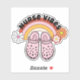 Step into a world of groovy goodness with our retro hippie style sticker! Featuring iconic rubber clogs, a vibrant rainbow, and cheerful flowers, this "Nurse Vibes" design is perfect for nurses who bring sunshine and positive energy everywhere they go.