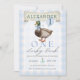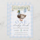 Retro One Lucky Duck 1st Birthday Blue Gingham Invitation