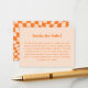 This matching “Books for Baby” enclosure card features the same retro orange abstract check pattern, designed to coordinate seamlessly with the full baby shower invitation suite. The warm peach background and playful typography gently invite guests to bring a favorite book in place of a traditional card, helping build a meaningful library for baby. A thoughtful detail that adds personality and intention to the celebration while keeping the overall look cohesive and modern. Ideal for baby showers with a fun, retro-inspired aesthetic.