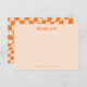 This personalized baby shower thank you card features a modern abstract check border in warm retro orange with a soft peach background. The simple layout leaves plenty of space inside for handwritten notes while adding a playful, design-forward touch to your stationery. A thoughtful way to thank guests after the celebration, designed to coordinate seamlessly with matching invitations, favors, and party decor. Ideal for baby showers with a fun, modern, and slightly retro aesthetic.