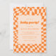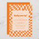 Retro Orange Abstract Chequerboard Baby Party Invitation