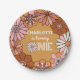 Retro Orange and Pink Floral Daisy First Birthday Paper Plate