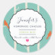 A candle / soap sticker with an illustration of birch trees with orange birds sitting on their branches. Retro green coloured background. Layered over top is a scalloped circle with your info inside.