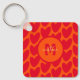 Retro Orange Groovy Red Hearts Name Over Monogram Key Ring